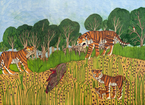 Blake Lenoir (b. 1984) creates highly detailed and accurate colored-pencil drawings of natural landscapes and animals. Specializing in depictions of entire ecosystems, with as many plant and animal species as he can fit onto a sheet of paper, his animal kingdoms are peaceful places where all coexist harmoniously. Several of his images have been used in national and local marketing campaigns, and one of his illustrations provided the cover for Temple Grandin, My Life in Pictures: A Coloring Book for Children about Autism (a companion to the HBO original film about the autistic author, activist, and engineer). Lenoir focuses his research by area or country for months at a time before beginning a new series of works, though his recurring areas of interest are the Middle East, African nations, and – his own backyard – the Calumet Region of northwest Illinois.