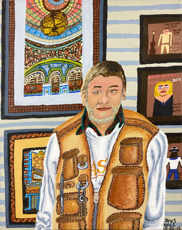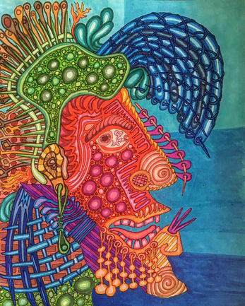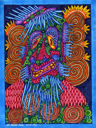 James Hall (b. 1954, Oak Park, IL) employs a variety of media to create highly detailed, composite imagery. Pulling from his imagination, he creates organic or geometric shapes that travel beyond, in front of, and through other shapes to create a tangled illusion of depth. In addition to his abstract compositions, James is known for highly detailed architectural scenes, such as his ambitious studies of the Chicago Cultural Center. The images are engaging, colorful, and highly rendered. Hall states, “It is fun to get my imagination to work. I like to put the colors down, using different mediums. It makes me feel better.”