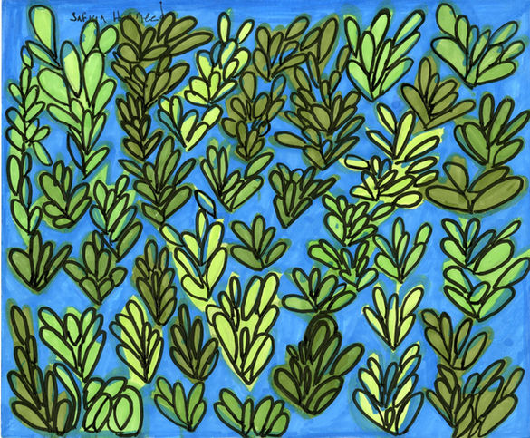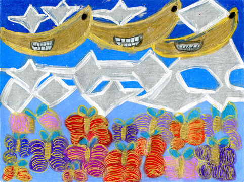 Safiya's whimsical, mixed media drawings and paintings are filled with bright, beautiful colors and patterns. Her subjects include flowers and plants, clouds and skies, butterflies, smiling sunrises, princesses, rainbows, and hearts.